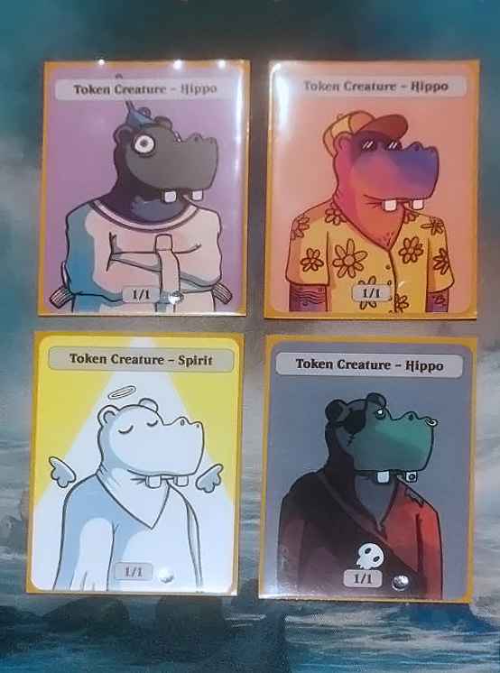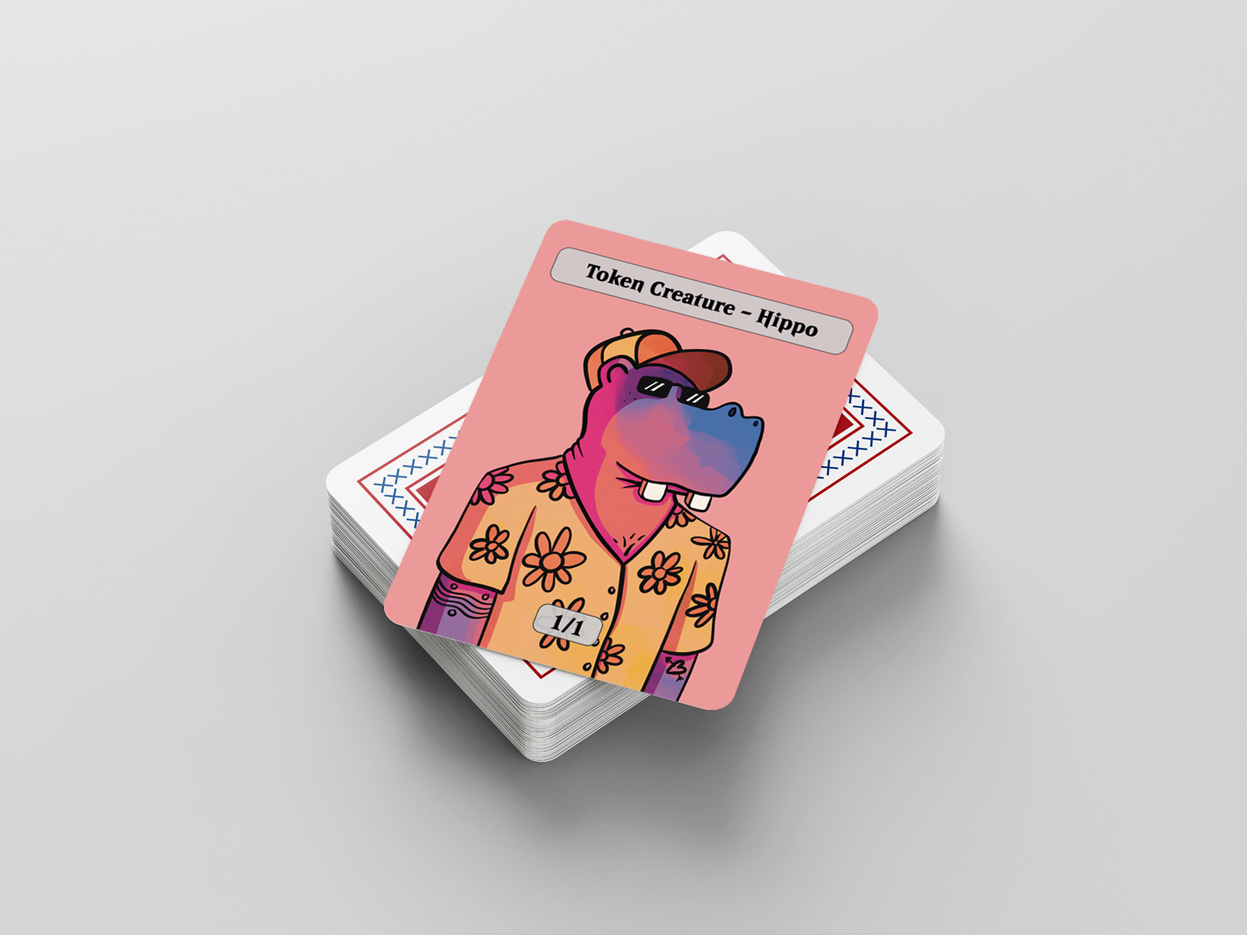 Aficionados du jeu de cartes, une personne m'a demandé de lui créer des cartes personnalisées pour ses parties de jeu "Magic The Gathering". Basé sur les hippopotames, cette personne m'a donné carte blanche pour les réaliser.